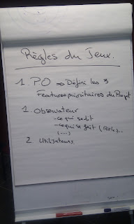 Lorsque le product owner présente son projet (vision) et cherche à identifier des features, puis des user stories il était intéressant de voir la pertinence des questions, et le niveau de compréhension des participants qui s’affine.