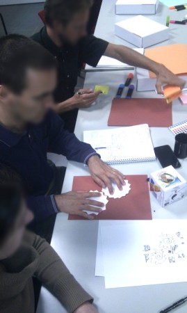 Les participants un peu intimidés par l’exercice ne souhaitent pas faire leur propre boite de produit, mais ils s’organisent en 2 groupes.