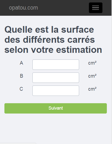 L’animateur n’a plus qu’à mesurer à l’écran la taille réelle du carré A, B et C et de renseigner leur surface afin de clôturer la session.